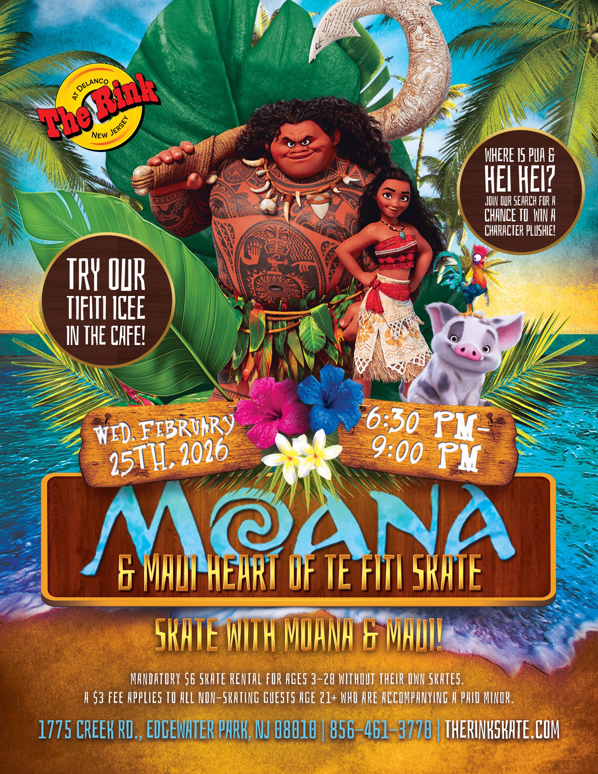 🌺🛼 Moana & Maui: Heart of Te Fiti Skate – Tuesday, Feb 25th, 2026! 🌊✨ Sail into an island adventure on wheels with Moana, Maui, and all your favorite friends!...