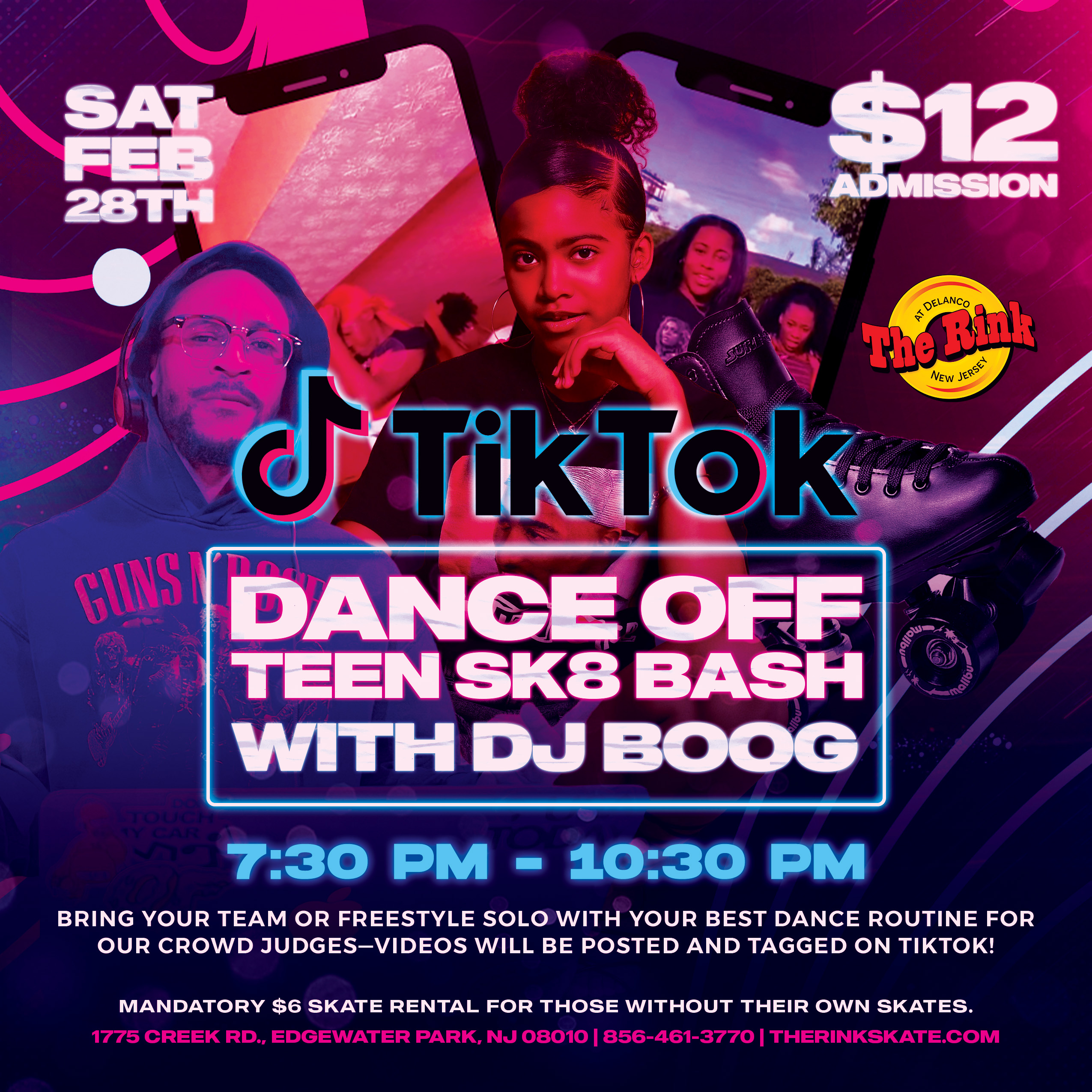 🔥🛼 Teen Sk8 Bash: TikTok Dance Off with DJ Boog – Saturday, Feb 28th, 2026! 💃📱 It’s your time to go viral! Pull up with your crew or dance solo...