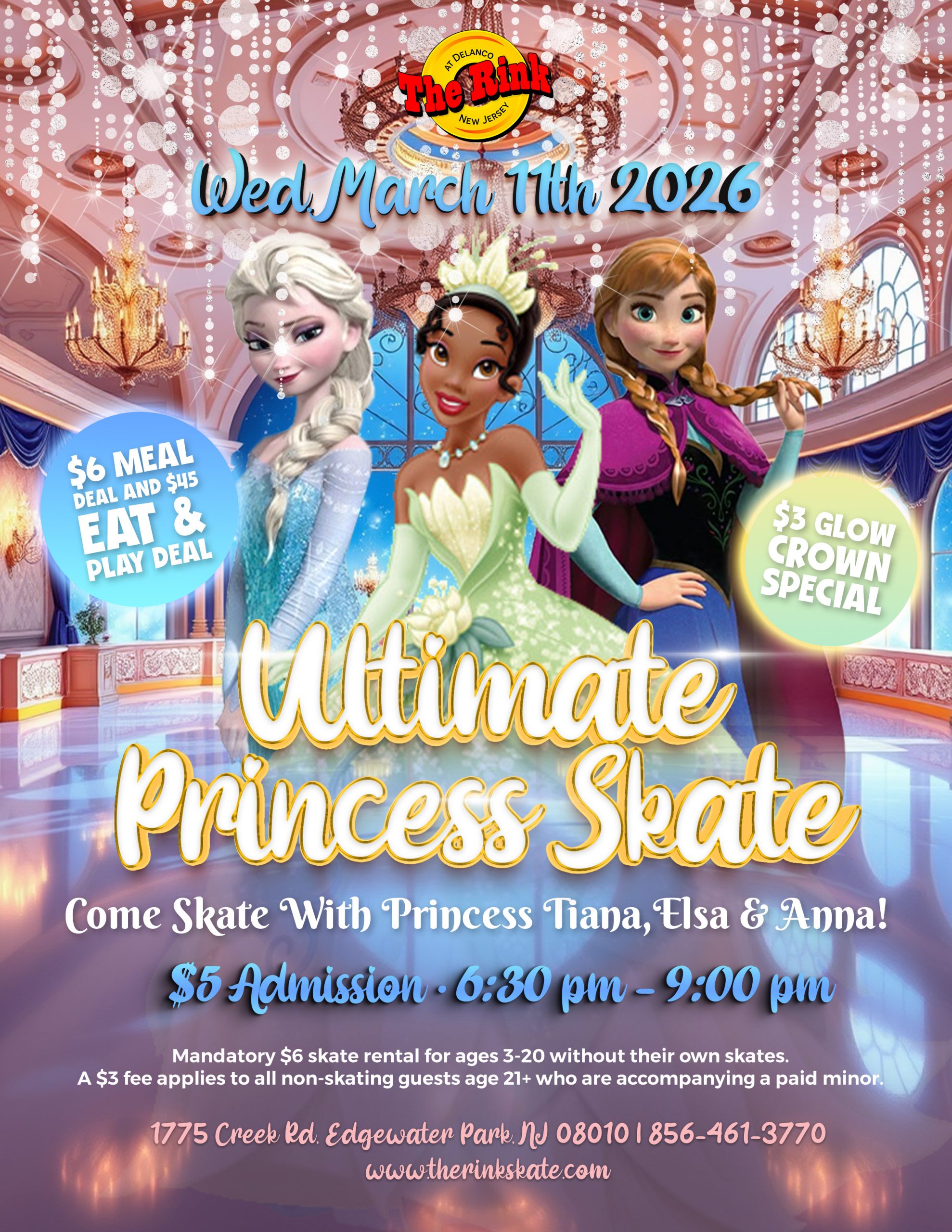 👑🛼 Ultimate Princess Skate – Wednesday, March 11th, 2026! ✨ Get ready for a magical night on wheels with some of your favorite princesses! 📅 Wednesday, March 11, 2026⏰ 6:30...