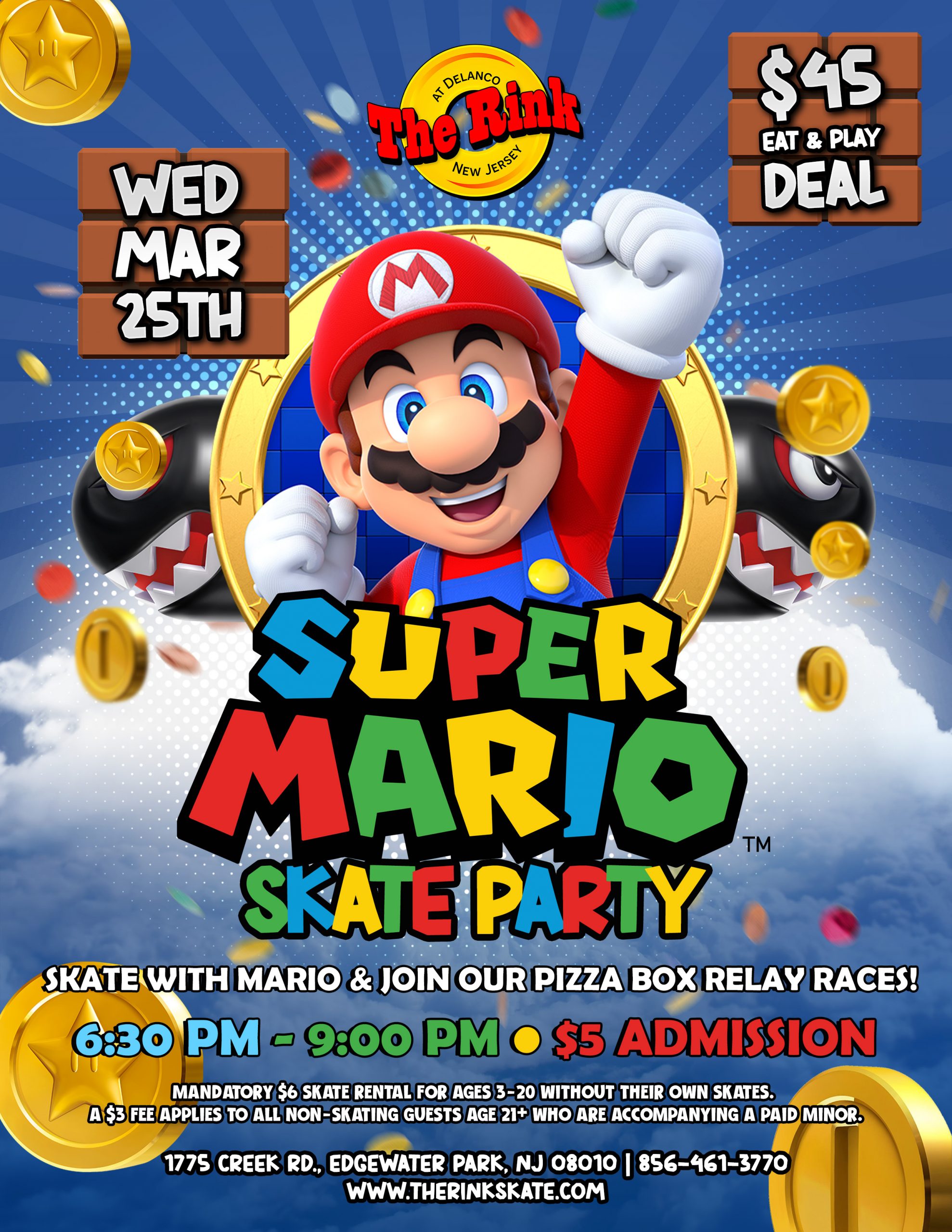 🍄🛼 Super Mario Skate Party – Wednesday, March 25th, 2026! ⭐🎮 Level up your night with a high-energy skate party featuring Mario! 📅 Wednesday, March 25, 2026⏰ 6:30 PM –...