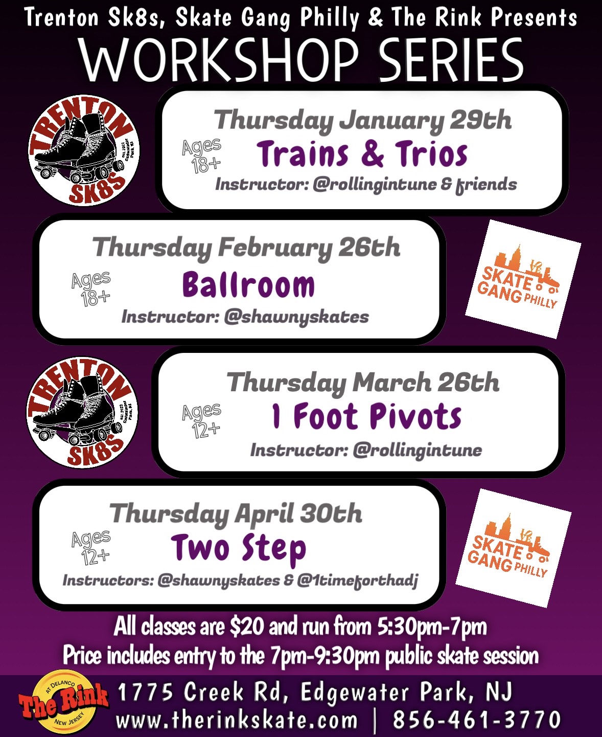 🛼✨ WORKSHOP SERIES AT THE RINK ✨🛼Presented by Trenton Sk8s & Skate Gang Philly Sharpen your skills with focused skate workshops led by top instructors! 📅 Dates & Styles:• Jan...